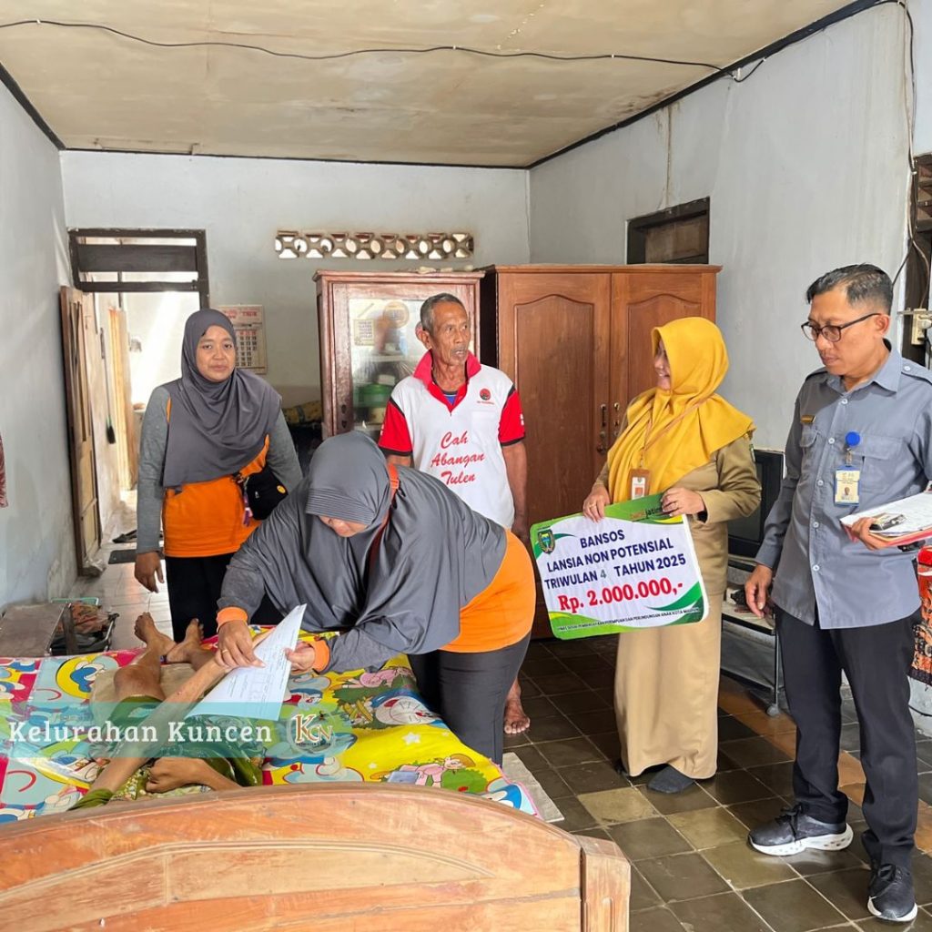 Petugas Dinsos PP dan PA Kota Madiun bersama Bank Jatim dan menyalurkan Bansos Lansia Non-Potensial Triwulan 4 Tahun 2025 secara langsung dari rumah ke rumah (door-to-door) di Kelurahan Kuncen. Bantuan ini dikhususkan bagi lansia “ngebrok” yang kondisinya sudah tidak mampu beraktivitas, sedang sakit, atau terbaring di tempat tidur dan termasuk dalam keluarga miskin. Langkah ini merupakan bentuk nyata kehadiran pemerintah dalam memberikan perlindungan sosial bagi warga yang paling membutuhkan perhatian khusus.